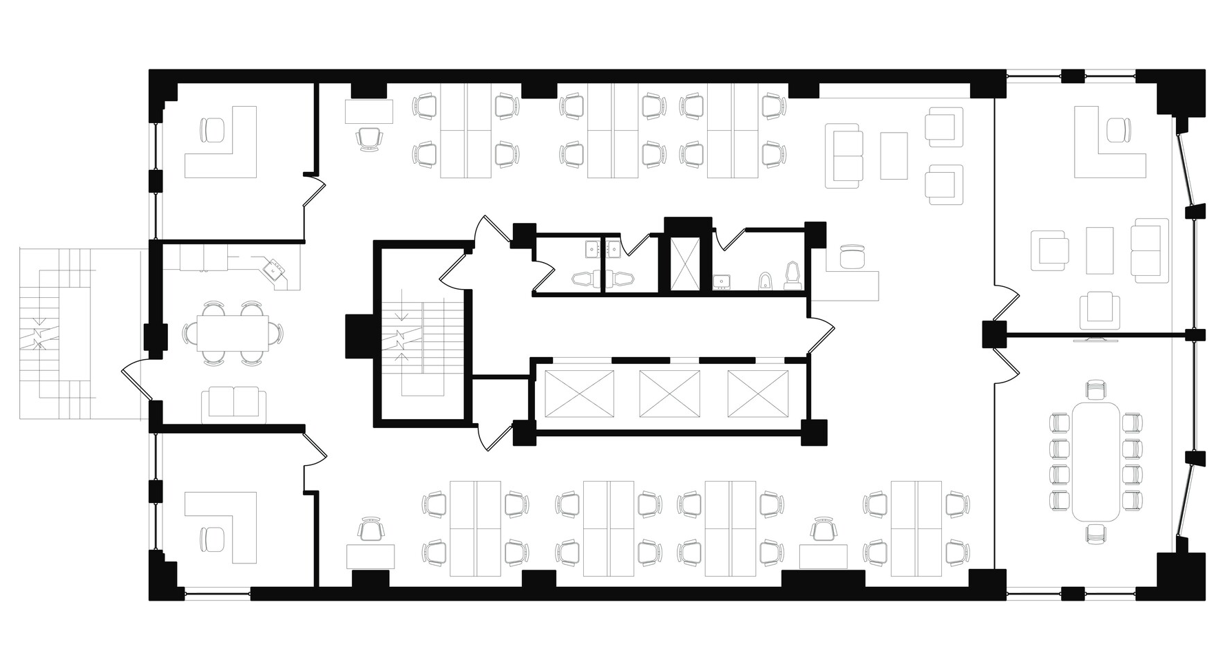 While there are currently no co-working spaces available within the building, we specialize in securing the best deals for your workspace needs, with no additional fees and expert negotiation on your behalf. Sublease opportunities may also be available, offering added flexibility for tenants.